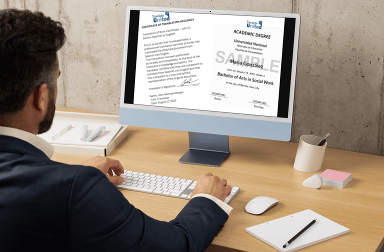TranslateUnited provides certified translations recognized by institutions, immigration authorities, and academic bodies. Each translation includes a signed statement of accuracy from the translator or agency, ensuring full acceptance for visa, citizenship, or educational credential submissions. We maintain strict confidentiality and document integrity throughout the process. Clients seeking academic document translation may also explore our academic translation service, while those submitting legal or court materials can benefit from our legal translation option under specialized translation services for seamless compliance and accuracy.